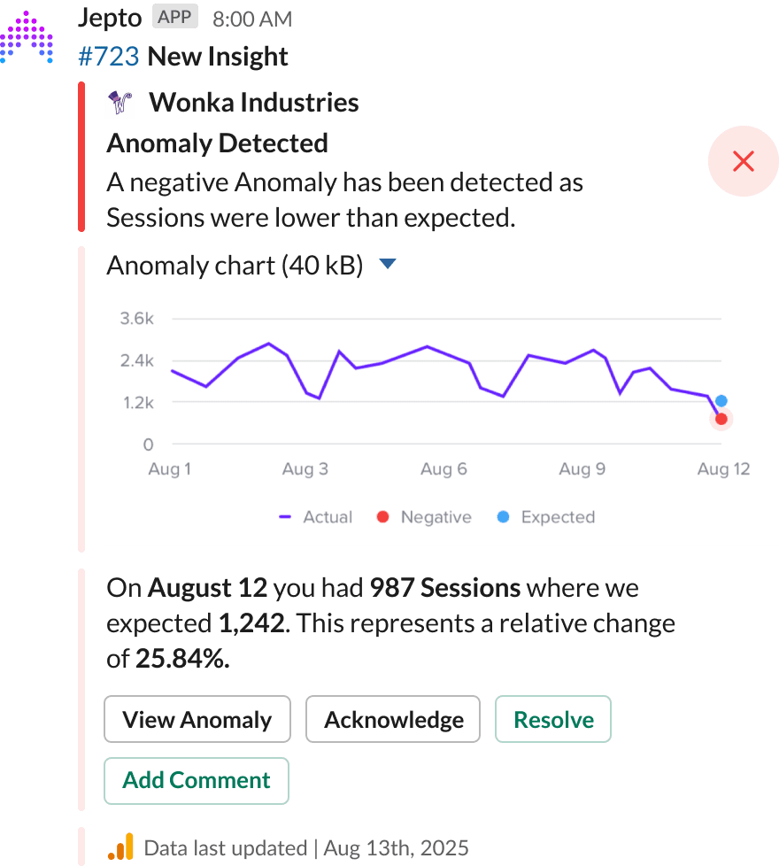 Get Anomaly and Insight alerts as soon as they happen.
